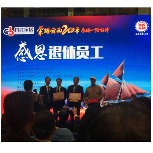 團隊的重要性,至于得勝家居企業(yè)集團有特別的意義,所以,20周年慶典上,特別對榮譽員工頒發(fā)了獎杯及獎金。